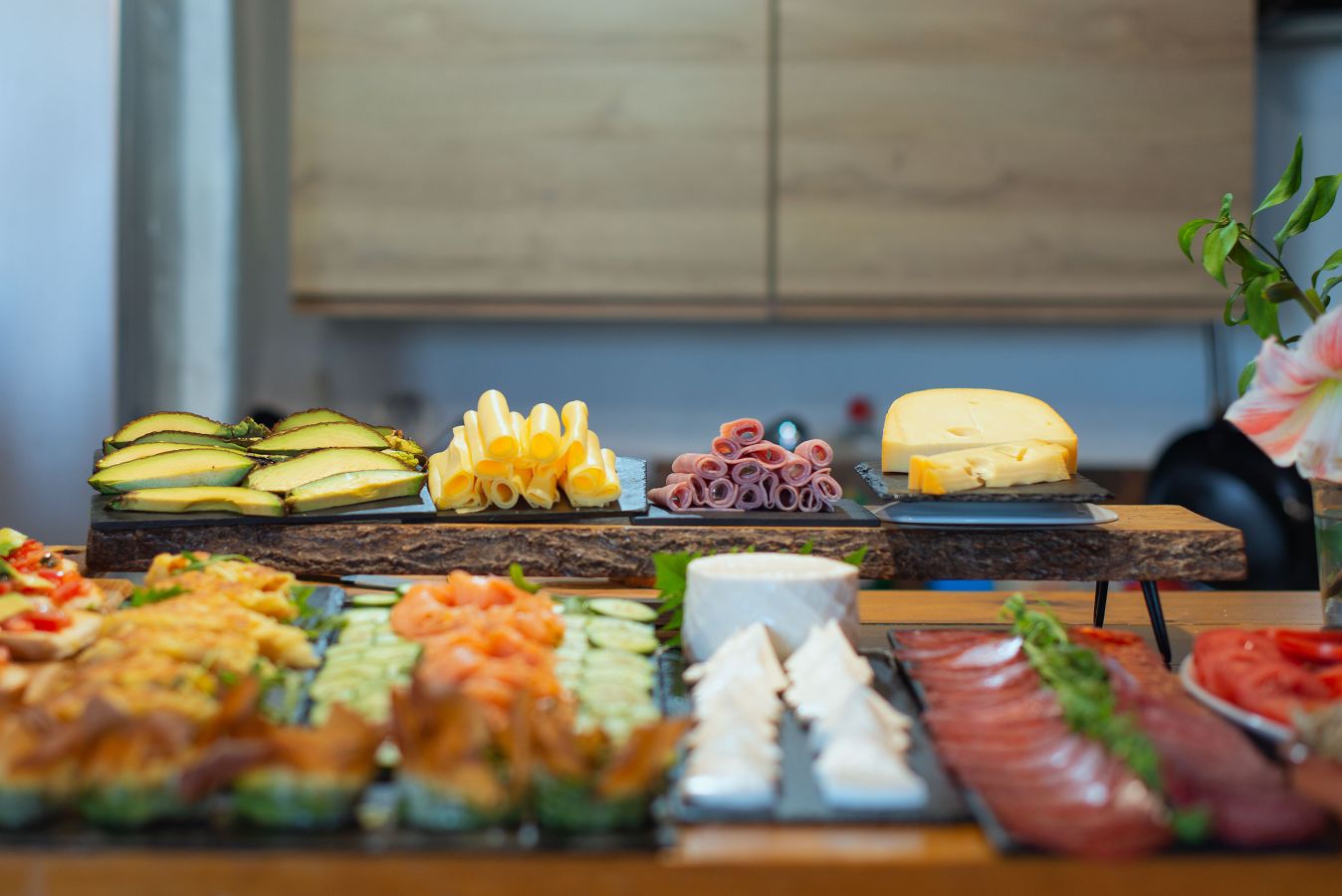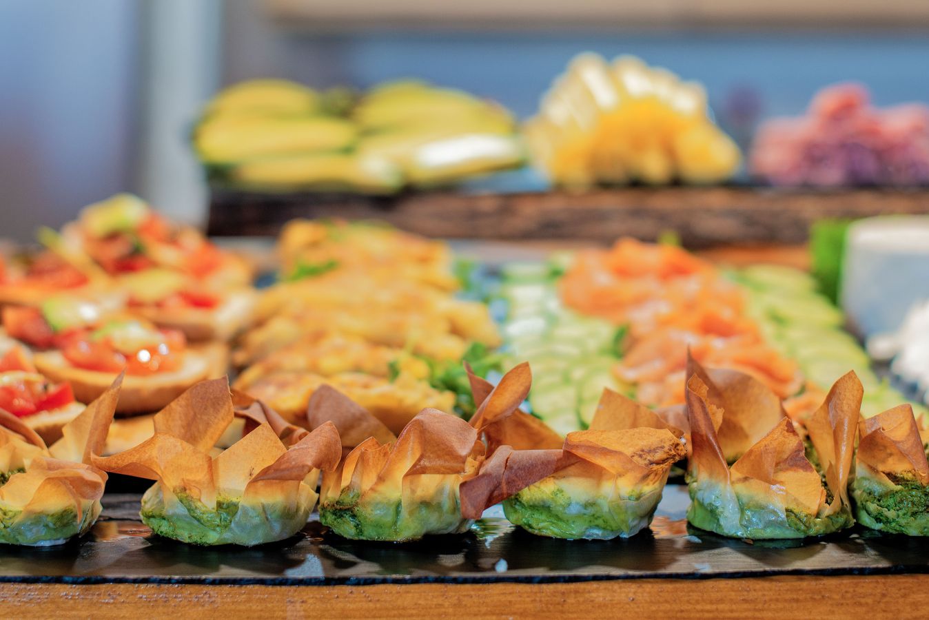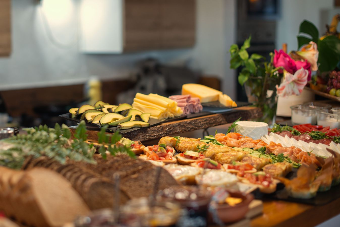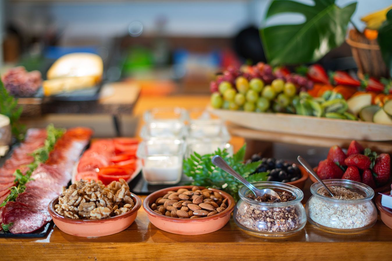 - Opciones continentales: Embutidos, quesos, fruta fresca de temporada.